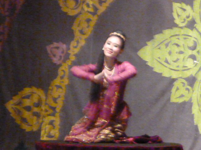 ヤンゴン市内の湖に浮かぶ船(?)の中で、ビュッフェの食事をしながら民族舞踊を鑑賞しました。