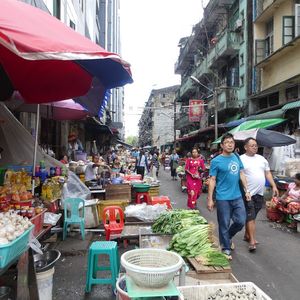 ヤンゴン中央駅から、環状線になっている路線の途中駅Hletanで降り、近くのマーケットへ。食料品を中心にあらゆるものを売っていて圧巻。活気があった。