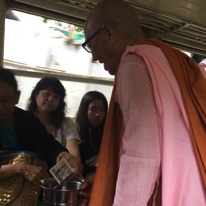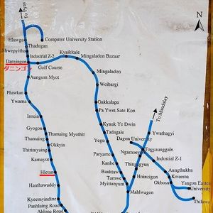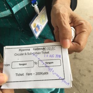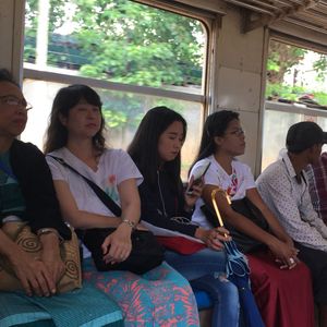 環状線の体験乗車とパゴタでの現地人と混じっての参拝ができます。まず、環状線の乗車ですが、ヤンゴン中央駅での切符の買い方は添乗員さんがいないと、かなり難しいと思いました。切符はホームの券売所で買います。外国人が切符を買うにはパスポートが必要なようですが、添乗員さんに買ってもらうのでパスポートは出さず。環状線は右回りと左回りがあります。現地の人でさえ、汽車がホームのどの辺に停車するのかを聞くような感じでした。電化されてませんので、電車でなく汽車ですね。汽車はJR東海で使っていた車両のようで、フロントの行先表示が「多治見」とか書かれている中古車両がやって来ます。冷房がある汽車と無い汽車があるようです。ヤンゴン中央駅では、ホームの高さと電車の乗車口の高さがマッチしていない(かなりの高低差がある)ので、電車のはしごを使って乗り降りします。多くの人の乗り降りがあって、社内も結構な混みよう。車内には日本で使っていた当時の日本語表示があちらこちらに見られました。降りる駅ですが、駅表示がミャンマー語以外にないことも(そう見えた?!)あり、ミステリーツアーにもできるかも。注意点としては、一般的な観光地と同様にスリくらいでしょう。