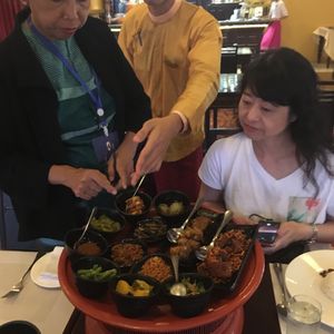 乗車後は早めのランチでPadonmar Restaurantというビルマ料理店でチキン、ポークのカレーと野菜炒めなど日本人の味覚にも合う美味しい料理でした。