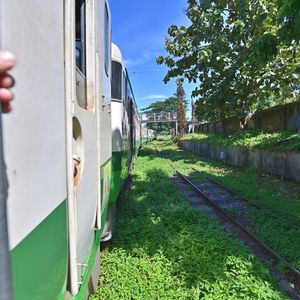 車体には日本語表記が残ったままで、草がぼうぼうで歪んだ軌道をノロノロと走る列車の中で昔にタイムスリップした様な感じでした。