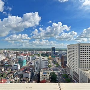 買い物後はシュエポンポエパゴダを散策、占いは興味が無かったのでパスして中華街散策、そして時間に余裕があったのと、私が写真好きということで、ガイドさんの提案でツアーコースには無かった「さくらタワー」20階Thiripyitsaya Sky Bistroでのお茶へと向かいました。
