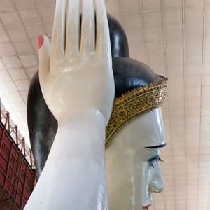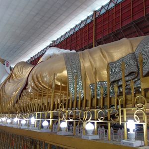 その後、アウンサン市場と市内を見学し、「チャウターヂー・パゴダ」で寝釈迦仏を拝観。