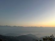 お正月休みにツアーに参加しました。朝5時半にホテル出発しナガルコットへ向かいちょうど日の出の時間に展望エリアへ到着。当日は晴れていたので、ヒマラヤ山脈に少しづつ日が当たって標高の高い山々から少しづつ山頂が白く明るく照らさせる様はとても神秘的で、素晴らしい日の出を見ることができました。朝はとても寒いのでダウンジャケットや帽子などの防寒はしっかりしたほうが良いです。近くのホテルでのヒマラヤ山脈を眺めな