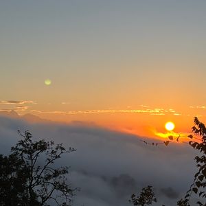 10月に入り比較的天気もう安定している時期に参加しました。山頂までの道のりはガスの中移動でしたが、日の出を見るポイントは、雲海を眺める形でした。日の出以外にも周辺の山も朝日に浮かび素晴らしい眺めでした。