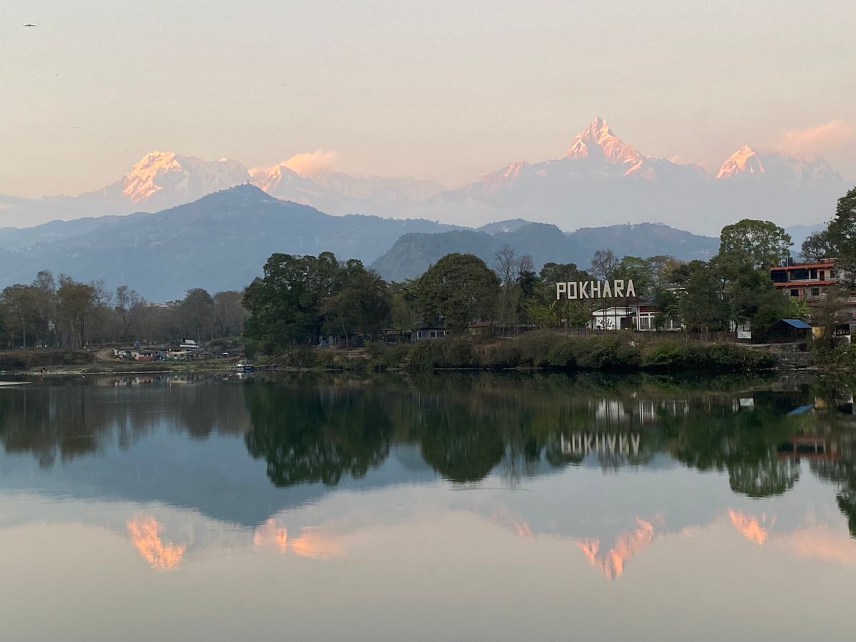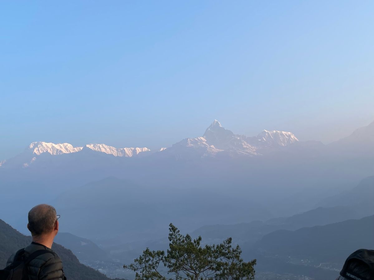 ポカラへのフライトではガイドさんが朝一番のフライトを予約してくださり、また山々が見える右側の席を早めにチェックインして確保してくれました。空港に着くなり眼前に山々が広がり圧倒されました。朝一番にポカラに着いたおかげで、ポカラ一日目で色んな箇所を回り終えることができました。ヘリツアーではベースキャンプで30分以上過ごせました。また帰りにはパイロットの隣になり、絶景を十分楽しめました。翌日はオプションで朝市を回り、ホテルでの食後にハイキングをしてオーストラリアキャンプ周辺を歩き回りました。その日は三万歩歩きました。ポカラのホテル前のレイクサイド通りでは年に一回の年末年始のお祭りで広範囲が夕方から歩行者天国になり、毎晩飽きませんでした。ホテル前でも大音量で踊りが披露されていましたが、疲れで爆睡できました。ポカラ最終日程度には、それまでずっと閉鎖されていたオプションのパラグライダーが十何日ぶりに再開し初体験することができました。上昇気流がしっかりあり恐怖感なんてゼロでした。オススメです。