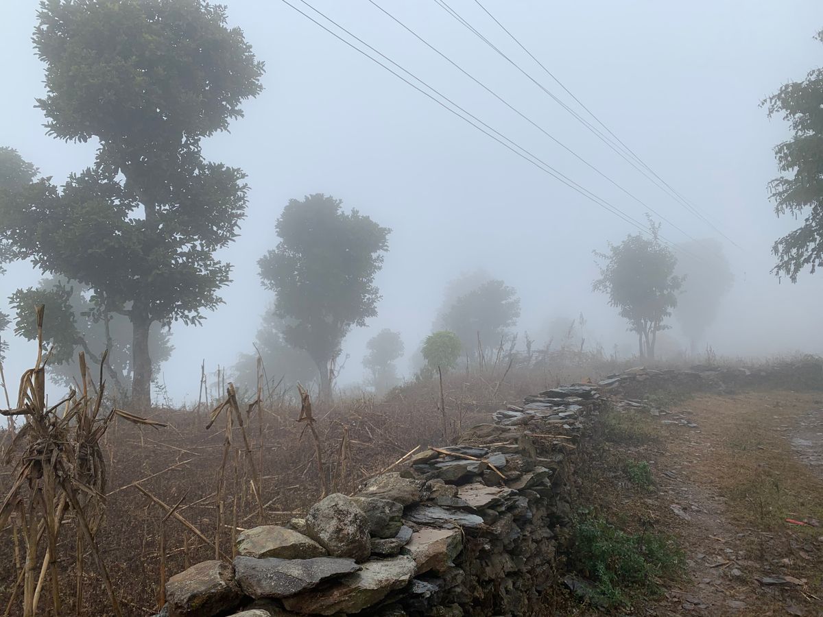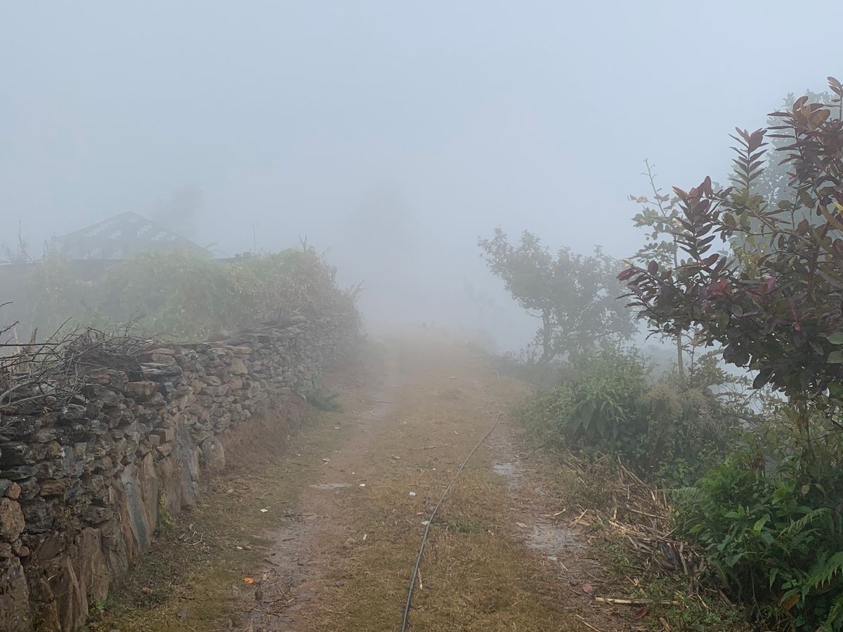 辿り着いたクンプル村は午後だというのになんと霧の中。