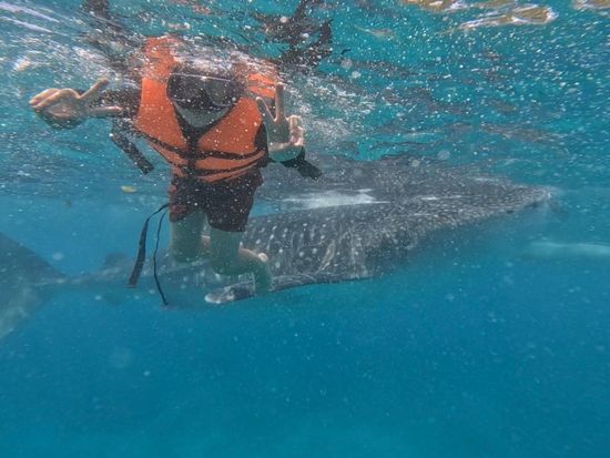 まさかの台風接近でジンベイザメシュノーケリングが中止に...でもガイドのセルさんがすぐにイワシとウミガメに会えるアクティビティを用意してくださり、現地の人の暖かさに触れることもできて本当に行って良かったと思える素敵な体験ができました。ツアーなしで個人で体験するのは難しいアクティビティばかりだったと思うので、行って本当に良かったと思います。ガイドのセルさんはとても日本語が上手で、常に私たちを笑かして