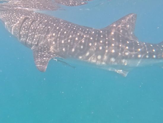 いざ、海に入るとなった時、私はシュノーケルが上手く使えず、パニックになってしまいましたが、ガイドの方が優しく指導してくださっため、途中から安心して潜る事ができました。ジンベエザメはあらゆるところにいるという訳ではなく、見つけた瞬間カメラを向けなければいけなかったため、想像以上に撮影が難しかったのですが、ジンベエザメの迫力を自分の目で実際に見ることができ、とても良い経験となりました。ガイドの方々も優しく、初めてのフィリピン旅行で不安もありましたが楽しい一日となりました!