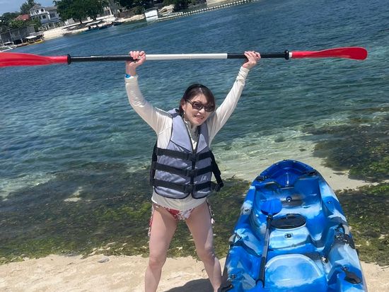 300ペソで30分シーカヤックをレンタルしました。ビーチの先の浮島までシーカヤックで往復したり楽しめました。