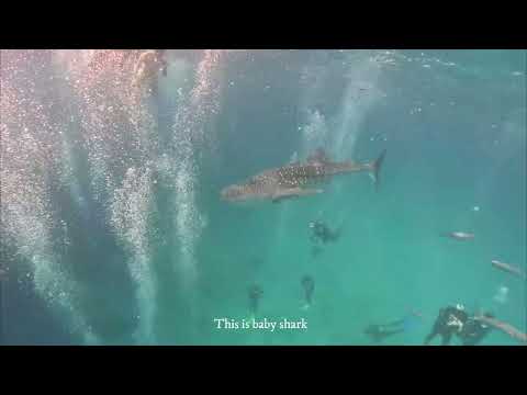 シュノーケリングマスクを装着して青の世界に飛び込むと、そこには巨大なジンベイザメの姿が!最初はびっくりしますが、プランクトン食性なので大きな歯が無く、動きは緩慢で表層にいることが多く人間にとって危険性の低いサメなので安心!