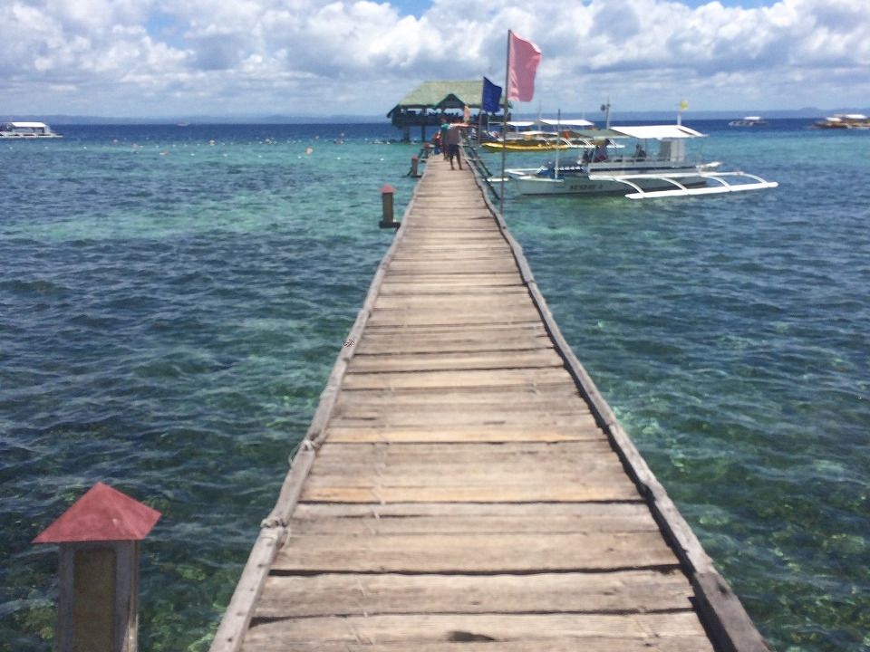 集合時間より前にちゃんと、ガイドさんがホテルのロビーに待機してくれていました。お迎えは、ジブニーというセブではよく見かける乗りものに乗って出発します。自分たちでは乗ったりできなかったので、それだけでもとてもいい経験になりました。道にゆれること数十分で、出発地のマリンステーションのようなところ行き、そこから少し小さなボートで移動してから大きなボートに乗り換えてまた数十分船に揺られます。もちろん、酔ったりするような感じではありません。日本語の話せるスタッフもそこにはおり、とても親切にしていただきました。何より、今回のツアーの宝物は、同行してくれた女性のガイドさんです。とても温かみのある方で、日本語はあまり上手ではなかったけれど、移動先でとても親切に私たちの面倒をみてくれました。荷物はしっかり預かってくれるし、写真もたくさんとってくれるし。それだけでも本当に感激してはいたのですが、ヒルトゥガンでの魚の多さ、海のきれいさには圧倒され、波もほとんどないので、泳ぎに自信のなかった中学生の娘も、まだ出たくない~と言ったくらいです。ここでは存分にシュノーケリングを楽しむことができました。それから、ナルスアンに移動し、ここはまた桟橋と海の調和がとてもきれいでそこにいるだけで幸せな気分になりました。食事も量が多く、味もおいしかったので楽しむことができました。このツアーは本当にお勧めです。最後はガイドさんと娘がハグをしてお別れしました。人・海・食 すべて満足のツアーでした。