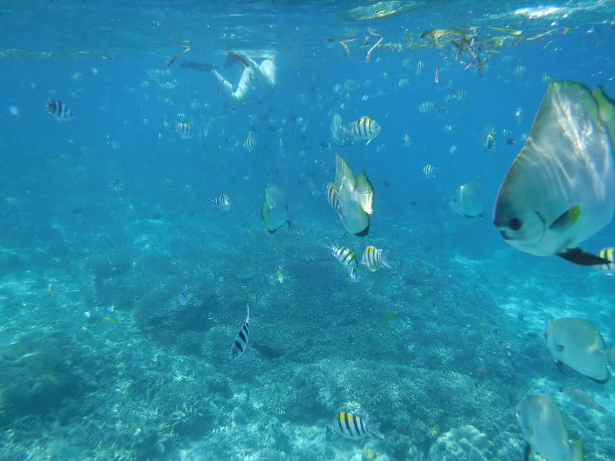 最初のポイントはかなり深い所で、二箇所目はご飯を食べるところで、浅いですが、魚が沢山いてとても綺麗でした。色々海外行ってますが、魚量と透明度はトップクラスでした!