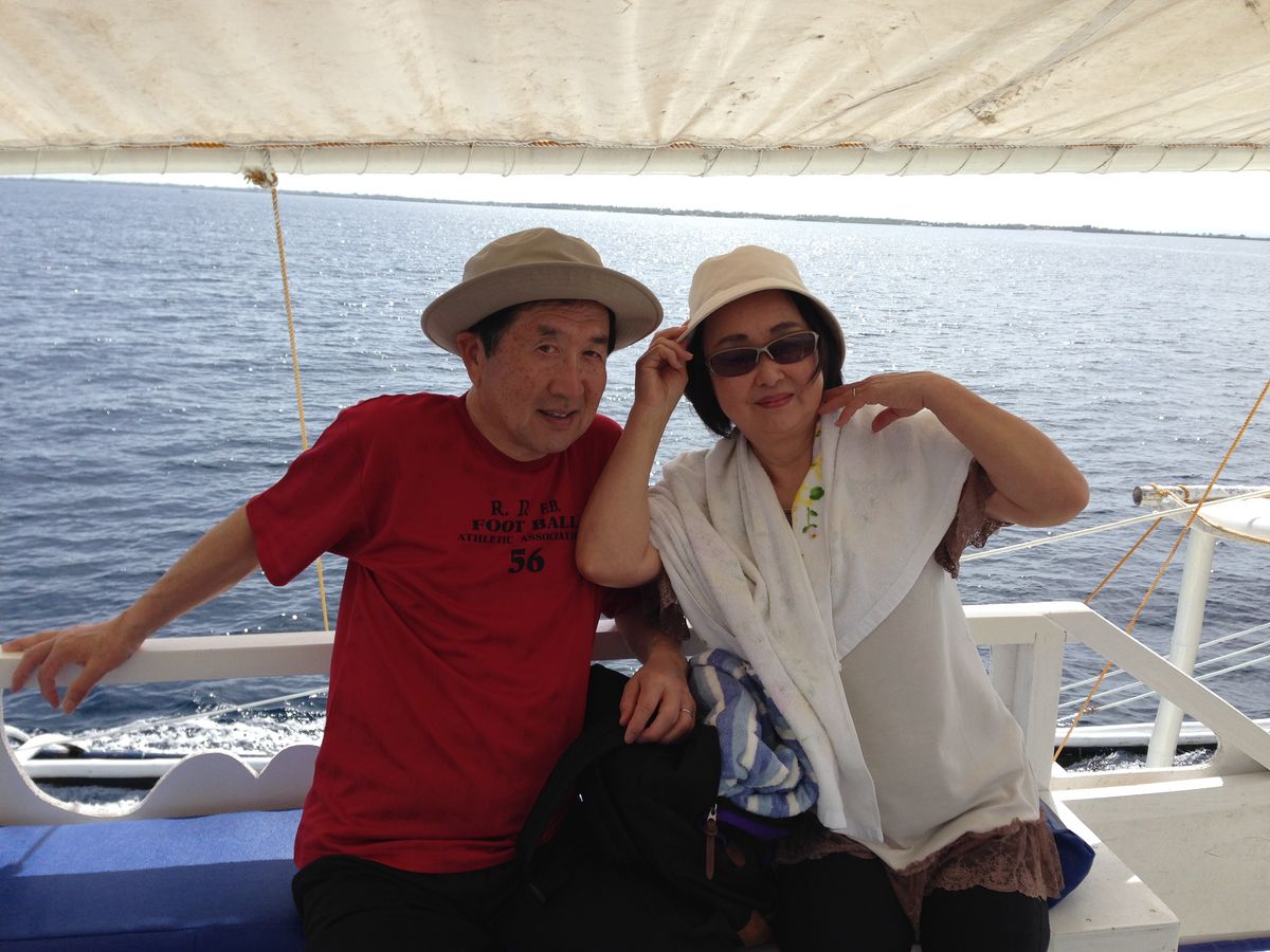 卒業旅行の学生さんばかりに還暦過ぎの夫婦2人が混じり、どうしましょうと不安になりました。が、 シュウノーケル、救命胴着、ひれ?を付け水に入ってみましたら、なんとスイスイ泳げ沢山の魚をまじかにみることができ(泳げません)ビックリです。