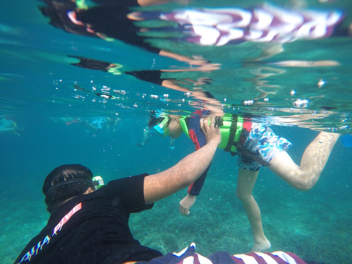 子供には現地スタッフがつきっきりでみてくれるので安心です。シュノーケル後は身体が冷えるので、着替えやタオルは多めにあったほうがいいと思います。