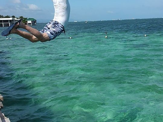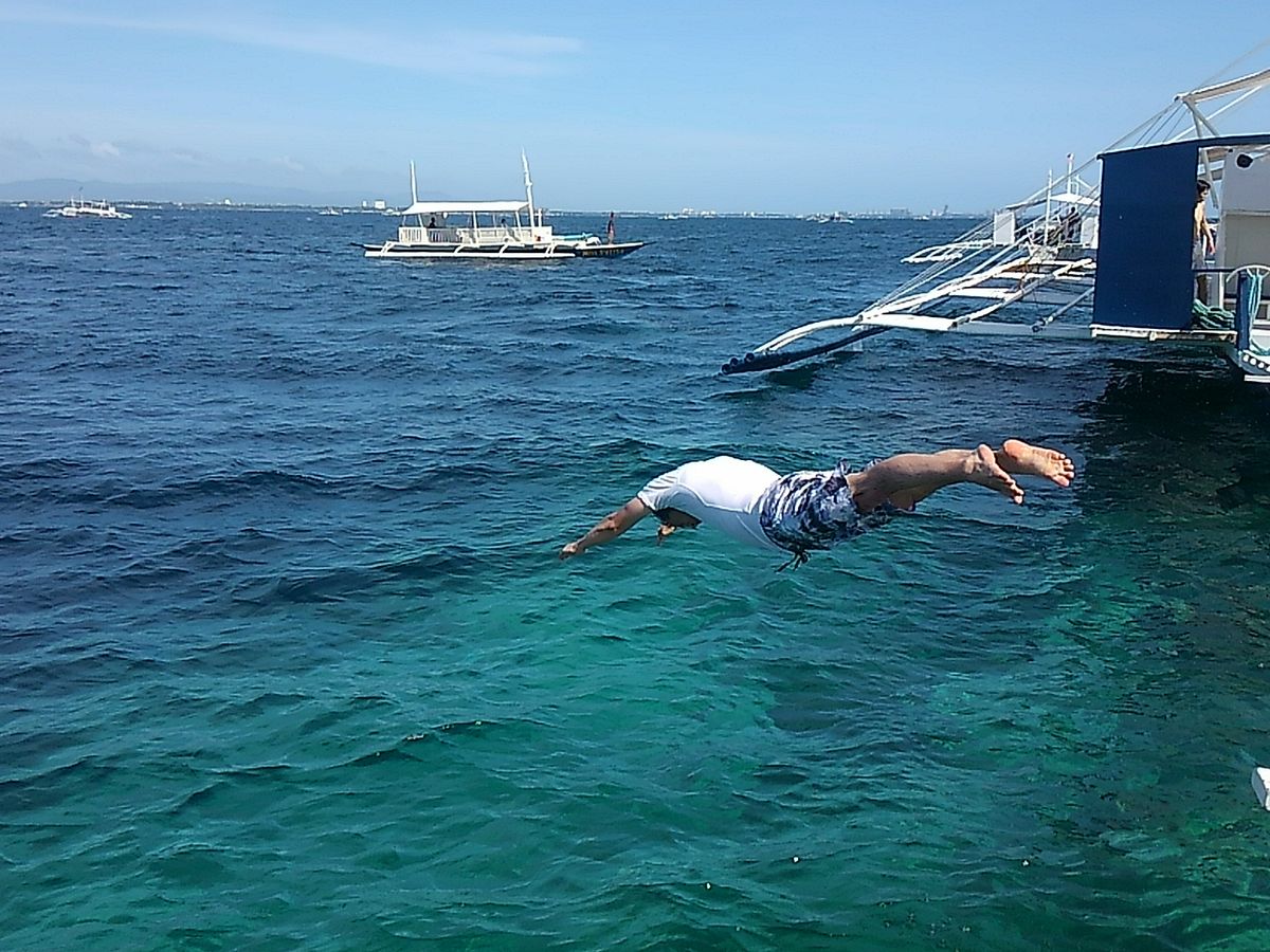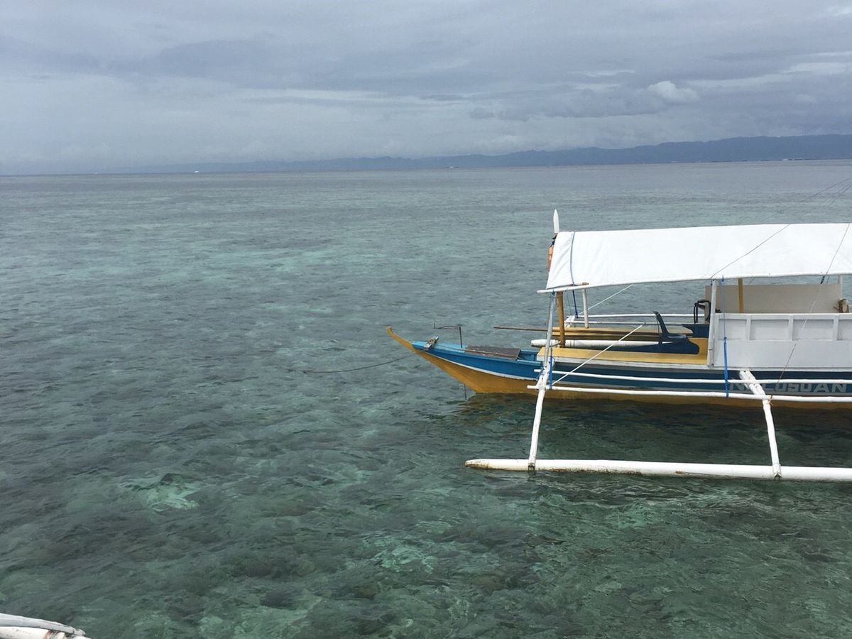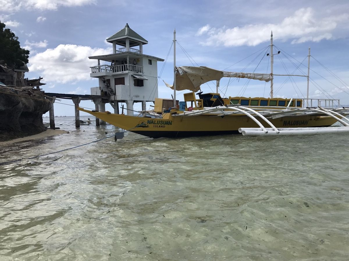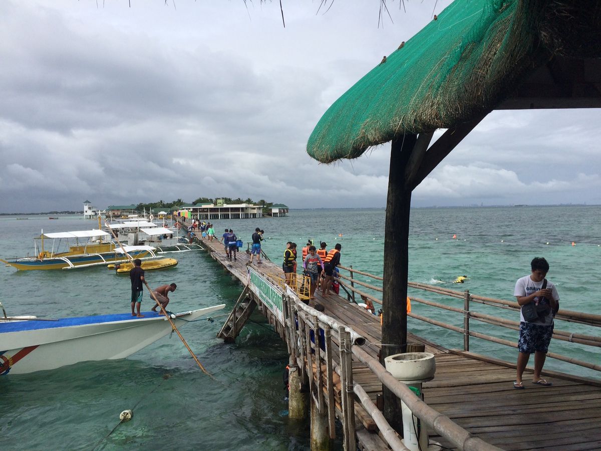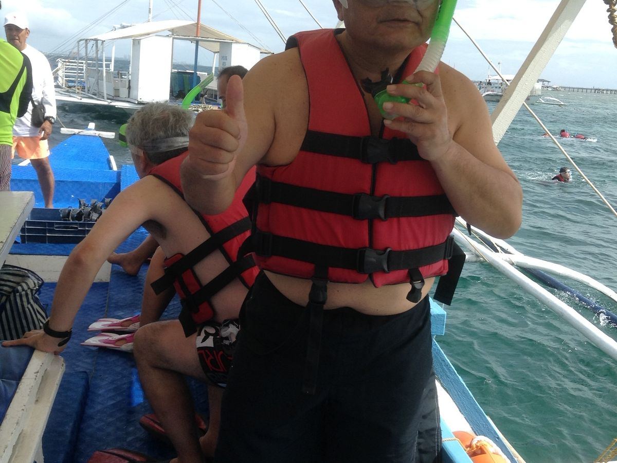 朝にホテルに迎えが来てびっくり!!他の旅行者がタクシーの中、私どもはジプニーが迎えにきて・・・大丈夫か?と半分頭をよぎったのですが、これもセブ島ならではかなと思い写真ぱちり初ジプニーで出航場所まで!!到着すると日本人ガイドさんが迎えてくれて船まで送迎(歩き)海岸を見渡すと遠くに船が(*_*)朝なので潮が引いている状態・・・船が海岸まで来れないということで海の中を歩いて船まで(・_・;)大丈夫かな・・・とまた半信半疑でしたが船に乗り込みいざ出航!!シュノーケリングは時間もたっぷりあり深い所から浅い所までゆっくりでき水も綺麗で魚がいっぱい綺麗なサンゴも見れて幸せな気分となりました。シュノーケルを終わり昼食の為、島に到着!!これぞ楽園といった雰囲気の木製の桟橋を歩いてわたりランチ会場へ!!肉や魚、スープなど色々出てきてびっくり(*^^)v米はやはり・・・でしたが、エビ・イカ・鶏肉など色々、ビール片手にお腹一杯満喫できました。昼食中スコールに当たりスコールの中またシュノーケリング!!で終了。船に乗り朝渡った海岸に戻りました。潮が満ちて海岸まで船が到着!!ジプニーにホテルまで送迎して頂き終了。ジプニー・船・スイノーケル・昼食どれをとっても最高なバカンスを満喫できました。