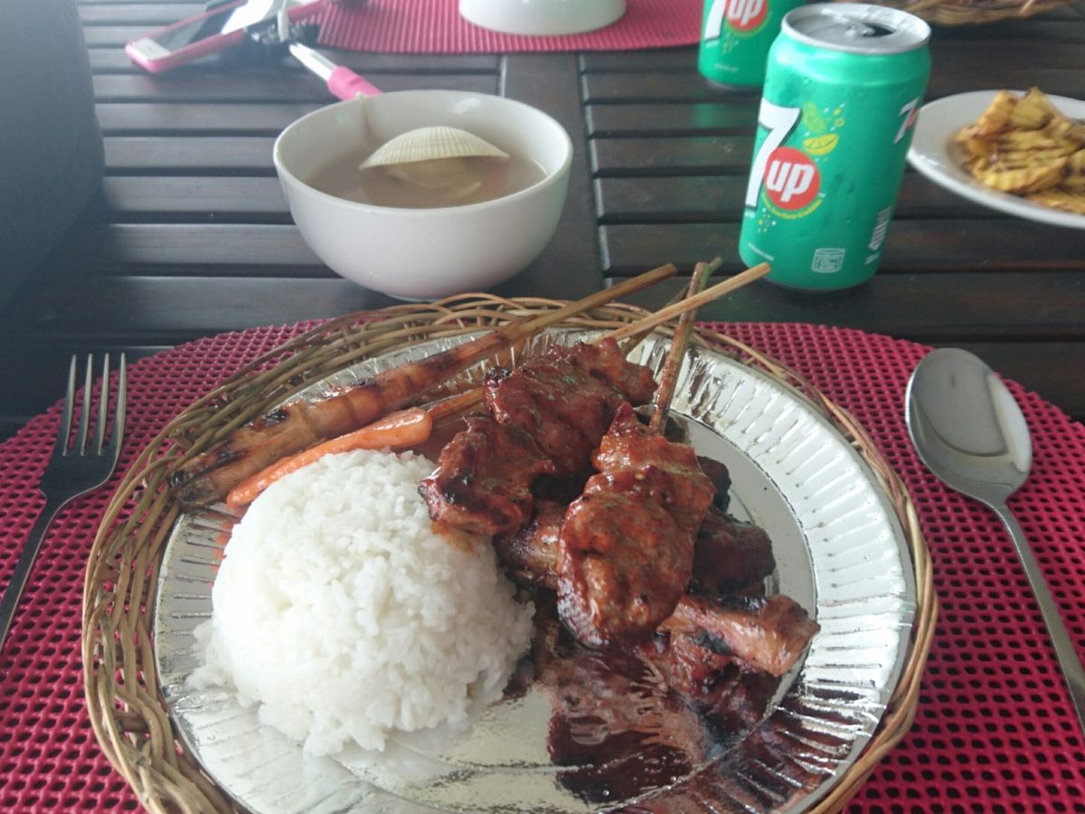 ランチはフィリピンスタイルのBBQ風でお肉を甘めのたれで味付けされた日本人にも合う味付けだったかと存じます。