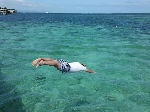 ホテルに送迎で出発、シュノーケルの扱い方の説明を受けて船に乗り込む。カンパイ号と日本人日本人に親しみやすい舟名でスタッフもシュノーケルの口の使い方の指導を受け、初めての水深10メートルぐらいのポイントで船から海に入り最初は、息継ぎが難しく潮水を飲み込むとパニックになり船に上がる。するとスタッフがシュノーケルの息継ぎをこまめに教えて下さり再度、海に入る。何度かこれを繰り返して魚が寄ってくるのを見て楽しさを感じてくる。そしてランチバーベキューを食べた後、浅瀬のポイント(3メートルぐらいのポイント)で何種類もの熱帯魚が泳いでいる。手を伸ばしてみると魚のそばで逃げる、だけど熱帯魚は、逃げずに寄ってくる、まるで水族館の水槽の中にいるようでした。また、体験したいシュノーケリングです。