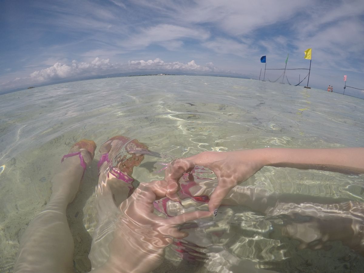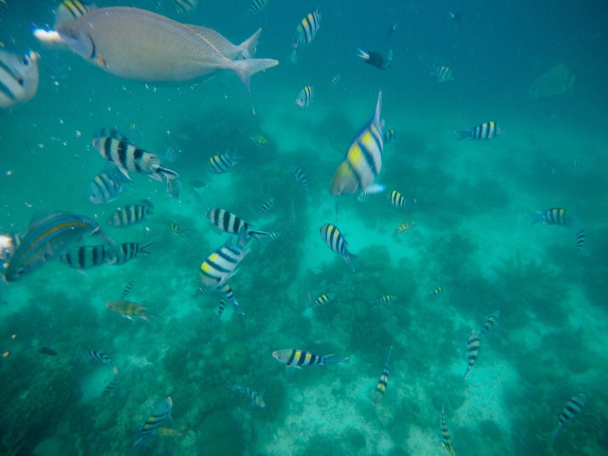 島に到着して、早速シュノーケリング。天候のせいか水の透明度はあまり高くなかったのですが、魚がとにかくたくさん。素晴らしい海です。