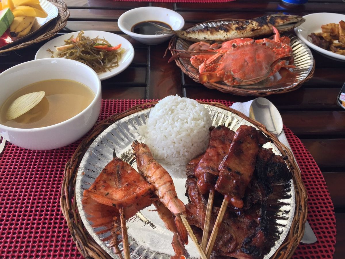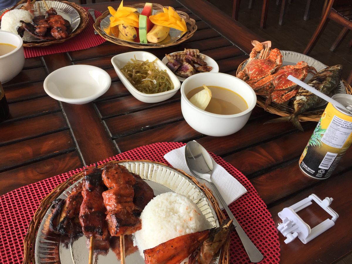 ナルスアン島の次はヒルトゥガン島へ!ヒルトゥガン島に着くと昼食が用意されています!メニューは豊富で、BBQで焼かれた肉類、魚介類はもちろん、フルーツの盛り合わせもありました!個人的にやはりフィリピンのマンゴーは美味でした。昼食後、ヒルトゥガン島のビーチで一休みした後、迎えの船で帰るといった流れです。