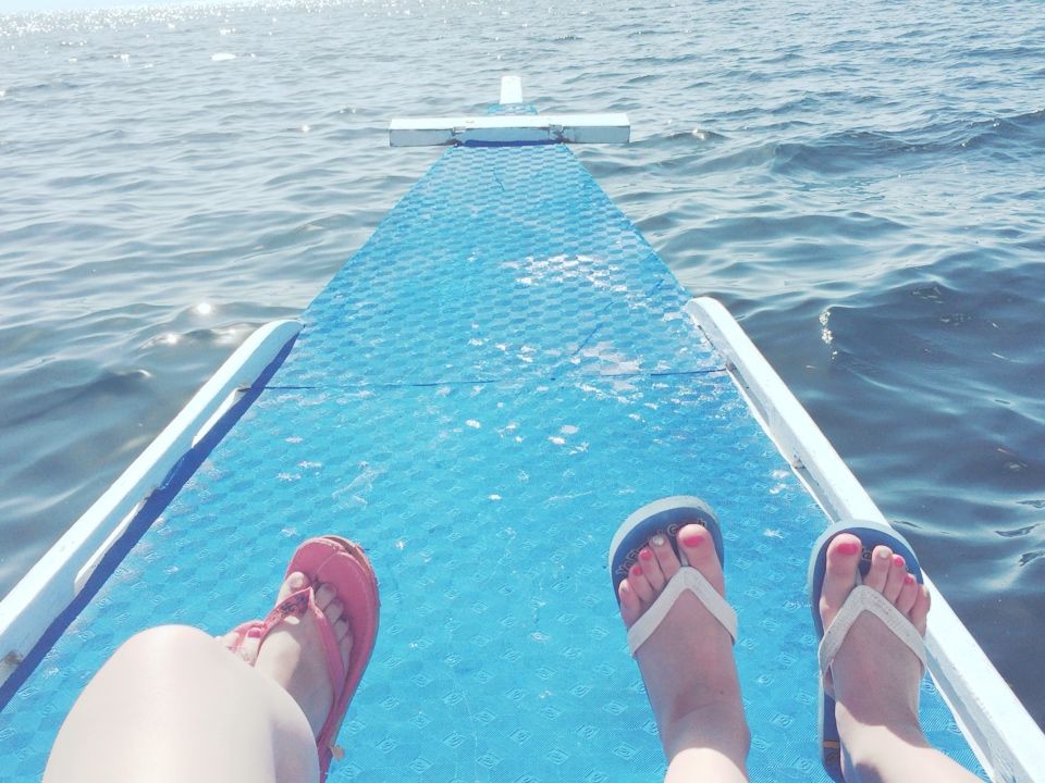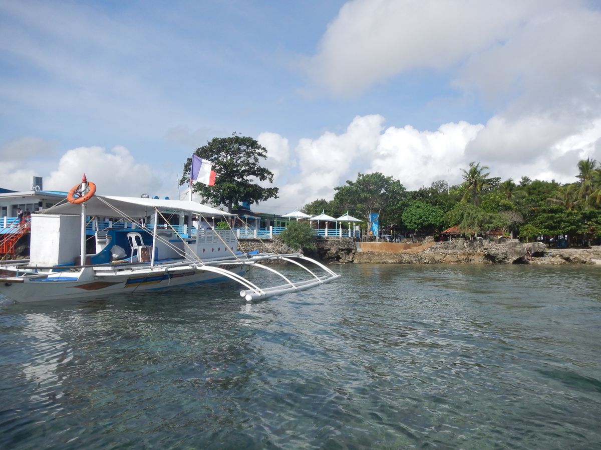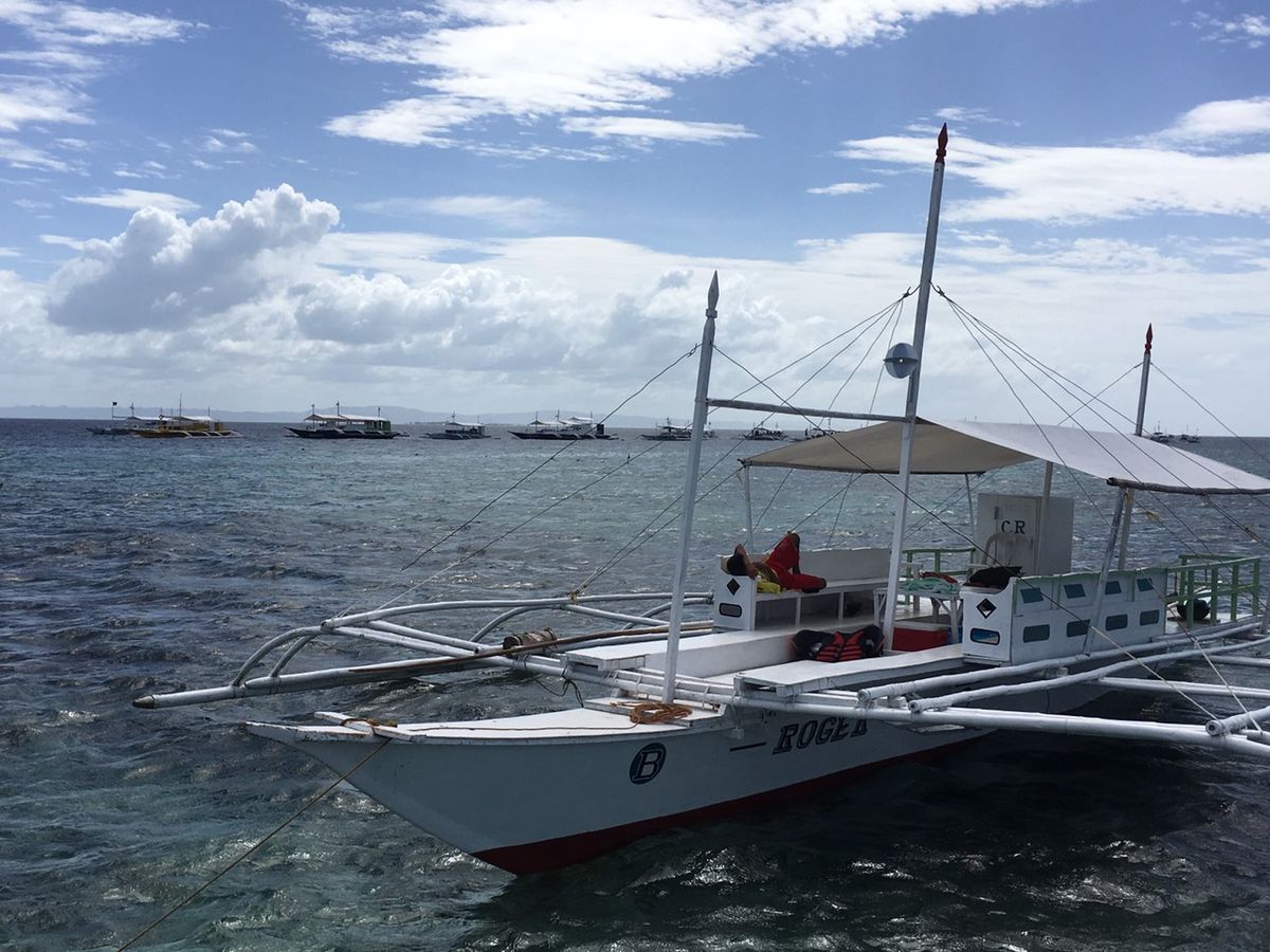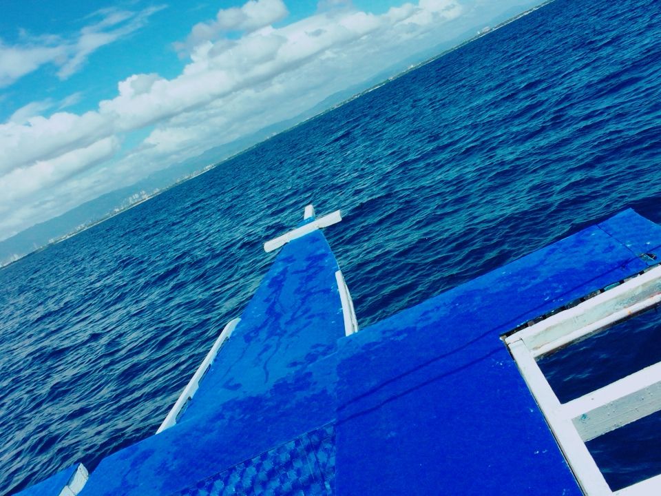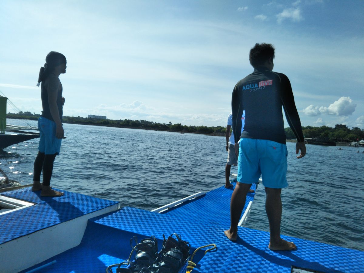 まずホテルロビーに"ジープニー"で迎えにきてくれました。大きな声で名前を呼んで頂けたのですぐにツアーの方だと分かりました。日本語が上手く現地のことを教えて頂きながら浜辺に向かい、到着後エンジン付きの船に乗りダイビングスポットまで30分程かけて移動しました。風は気持ちいいです。また結構揺れますので船酔いしやすい人はあらかじめ薬を飲んでおくのがベターかも。