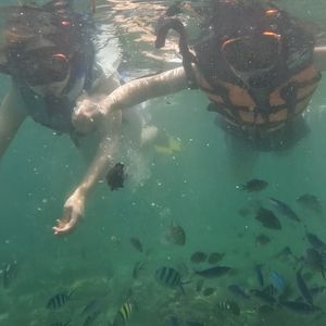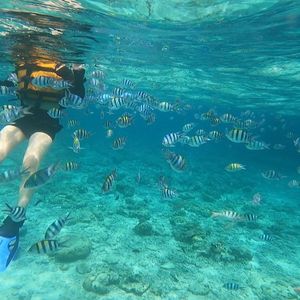 本当に最高の時間でした!シュノーケリングでは、色とりどりの魚に出会えて、映えスポットではガイドさんが沢山写真を撮ってくれます。マンゴー、バナナ、バーベキューランチも美味しい。タオルと飲み物を準備してくれてるのも非常にありがたかった。