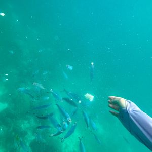 魚にパンをあげることもできるので、泳げなくても船の上から魚を見ることもできます。