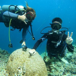 ダイビングは初めてだったのですが、日本語での説明や、潜る前の練習がしっかりとあり、安心して楽しめました。近くで綺麗な魚や珊瑚礁を見ることができて、ダイビング体験して良かったです!!
