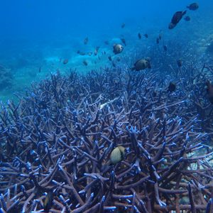 珊瑚や魚がたくさんいて、