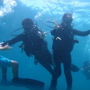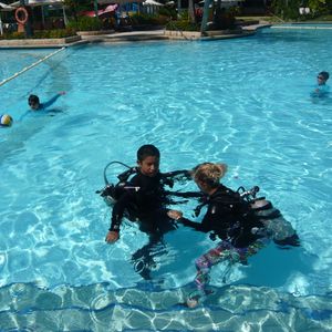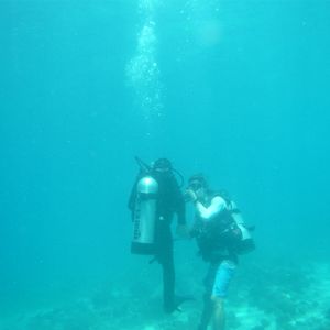 最初、基本的な動作や耳抜きなどの練習をプールで行い、ヒルトゥガン島へ船で行きました。とても綺麗な海でダイビング開始!実際のダイビング中は、常にインストラクターが付いてくれて安心してダイビングを楽しむ事ができました。水中カメラを持っていったので、スタッフが撮影もして下さり素敵な写真も撮ることができました。