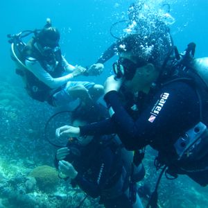 スコッティーズでは、ライセンスのないお客様は体験ボートダイビングにご参加、プールで練習されている間、ライセンスをお持ちの方は通常のボートダイビングにご参加いただき、その後、体験ダイビングのオーシャンダイブに合わせて、ライセンスダイバーが2本目のダイビングに行っていただけるようなスケジュールになっております。