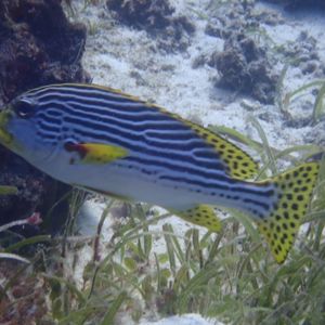 ただ、ライセンスをお持ちでない方は、海洋保護区でも安全上の為、ボートやジェットスキーが海上を走らない区域でのダイビングを行っております。