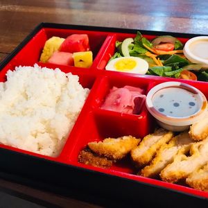 お昼は、トンカツ弁当と味噌汁で日本食が恋しくなった時は最高です。