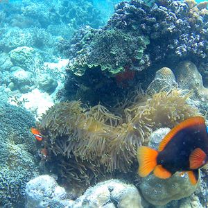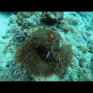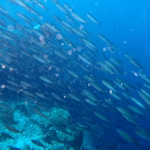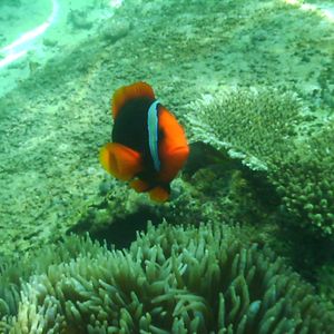 魚も群れも見れて、鮮やかなニモらしき魚もいました。初めて潜る海の中は幻想的で透明感があり、とにかく感動しました!