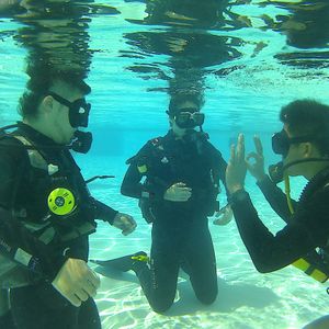 呼吸や合図の仕方、メガネやマスクに水が入った時の出し方、耳抜きの方法などを教わります。