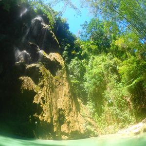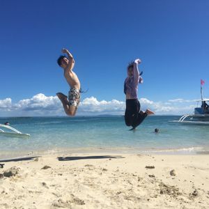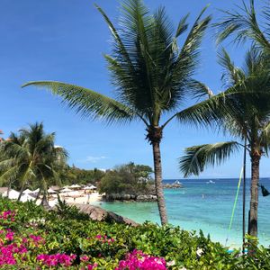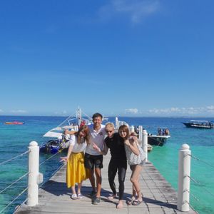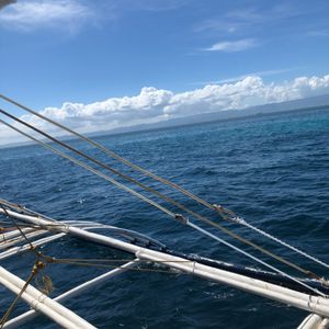 二本目はギンガメアジがいるスポットを潜るはずが、海流が強いとの事でスミロン島でのダイビングに変更。次のスポットに移動中にマンゴーとバナナが出てきます。船上で食べるマンゴーは最高でした!途中、スミロン島のサンドバーに10分ぐらい上陸し、(ガイドさんが写真を撮ってくれます)ボートに戻り二本目スタート。きれいなサンゴ、沢山の魚がいて、イワシ?の魚群にも遭遇でき、大満足でした。陸に戻り、シャワー(水流は超弱め)を浴び、着替えて、フィリピン料理のランチ。休憩後ツマログの滝へ向かいます。おまけ程度だろうとあまり期待はしていませんでしたが、滝は神秘的で思わぬご褒美でした。ノエルさんにいっぱい写真を撮ってもらいホテルへ向かいます。帰りは終始爆睡でした(笑)ノエルさんにまぬけな寝顔写真まで撮られました(笑)