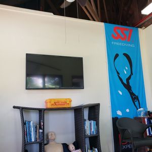 まず10分ほどのスキューバダイビングの注意事項などに関する映像を2本見て、その後砂浜から海に入ります。