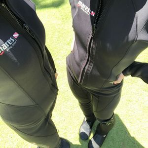 ウエットスーツを着るのがとても大変で、みんなでぴょんぴょん跳んでいました。