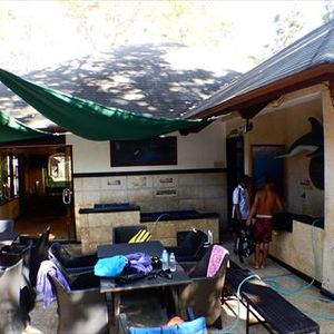 ウエットスーツはきつかったけど、跳びながら着てワイワイと。重りを付けてプールまで歩き、呼吸法の練習をしたり、マスクに水が入ったのを出す練習したり。私はちょっとプチパニックになって、これで海行くの大丈夫かなぁと心配でした。が、海に入って魚見たり、珊瑚見たり、そんな心配何処へやら。とっても楽しい時間でした。午後からは船で沖へ出て潜りました。しっかりインストラクターさんにしがみつき、この時も初めは耳抜きが上手くできないなぁと思いながらも落ち着いて何回かやれば大丈夫になりました。深い所まで潜ることができて、インストラクターさんと一緒ですが割とこちらの思うように泳がせてくれていて楽しむ事ができました。日本人の方は午後からは居なかったけど、午前中から一緒だったインストラクターさんなのでジェスチャーで伝えることもでき、帰りの船は雨がかなり降っていて顔が痛くて、けどそれもいい思い出になりました。