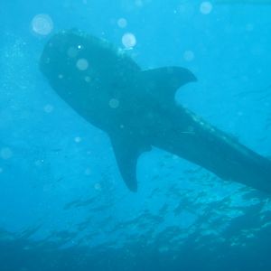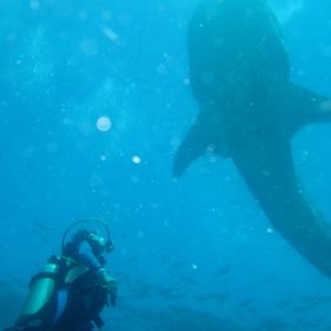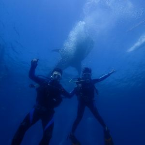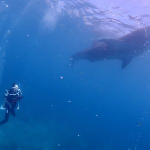 このツアーを選んだ理由は、夢だったジンベエザメと泳ぐことができ、他のポイントでもダイビングができること。ツマログの滝にも立ち寄れ、しかもマンゴーが食べ放題という盛りだくさんの内容にひかれたからです。最初、ジンベエザメとシュノーケリングで泳ぐのか、ダイビングで泳ぐのか、悩みに悩みましたが、「ジンベエザメの全体的なフォルムが見たい!」ということでダイビングに決めました。結果、沢山のジンベエザメを間近で見ることができ、水面をコバンザメを引き連れて悠々と泳いでる姿を下から見上げるという貴重な体験もできました。下から見るジンベエザメは圧巻で、シュノーケリングでは味わうことはできないと思います。私はダイビングにして良かったです。