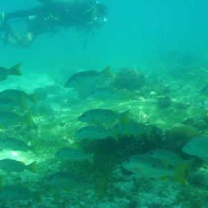 海に入ると、まず魚の多さに驚きました!そしてサンゴ礁が綺麗なこと!様々な種類のサンゴに、これまた数え切れないほど多種多様の魚が住んでいました。映像でしかみたことないような楽園が体験できました。スタッフの方がリードしてくれるので、慣れていなくても安心して潜ることができ、とても満足です。