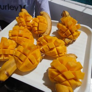 帰りの船ではマンゴーをいただき、さらに幸せでした。