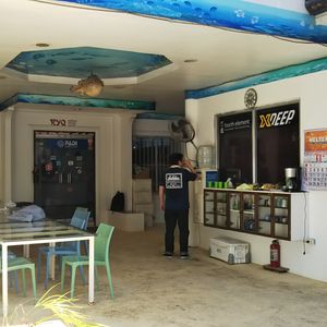 ショップ内は清潔で広々としていてトイレも綺麗です。日本人の優しいマダムが豆を挽いてモーニングコーヒーを淹れてくれました。彼女はセブ島に移住して18年だそうです。セブもダイビングもベテランで頼もしく安心です。周りはハイリゾートに囲まれていて優雅です。ショップの真裏にボートが繋がれており、セッティング済の機材も既に積まれています。ミーティングエリア横の通路の先は直ぐ海。移動も楽ちんです。ポイントにも近く内海は凪で、移動中のボートの揺れは気になりませんでした。私のグループのインストラクターはマダムの長男のリュウさん。シャイですがサービス精神旺盛です。美しい景観を眺めながら頂いたおやつは感動の旨さ。汐辛い口に完熟マンゴーがとろけました。セブシティからはタクシーで90分位かかるので、前日はマクタン島内の宿で送迎サービスをお願いしたほうが良さそうです。ゆったりとした時間を過ごせました。