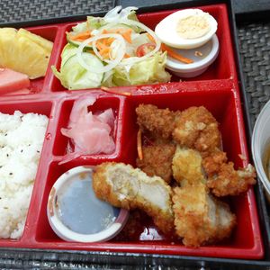 日本食弁当はお味噌汁つきで日本人のお客様から好評を得ております。