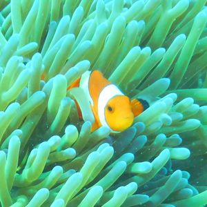 魚を上から見るのではなく、横や上に魚の大群がいたり、カクレクマノミ(ニモ)がいるイソギンチャクのおうちを観察したり♪