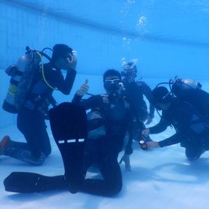 弊社ではプールでの体験ダイビングも催行しており、波の無いプールで安心して基本スキルを習得された後、ボートで海にダイビングするプランとなっています。