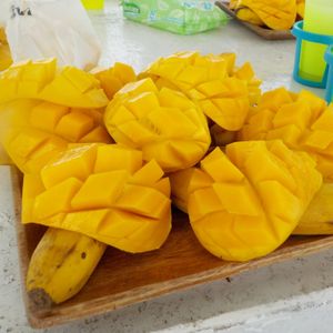 休憩中に出していただいた、マンゴーとバナナがとても美味しかったです。