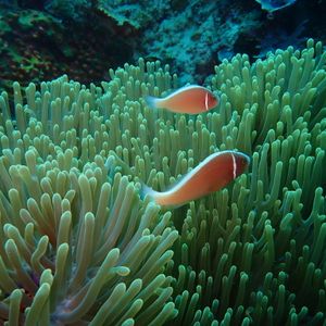 海にはヒトデ、クマノミ、群れの魚、シャコガイ、ウミウシがいました。