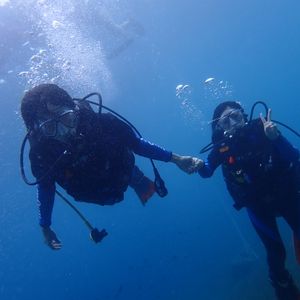 午前中は日本人のスタッフさんが浅瀬で練習させてくれて基本的なハンドサインやトラブルの対処法、呼吸法などを親切に教えてくださいました。お昼ご飯を食べてからはインストラクターさんが外国の方に変わったので英語でのやり取りでしたがとても親切で丁寧だったので不安なくダイビングを経験することができました!