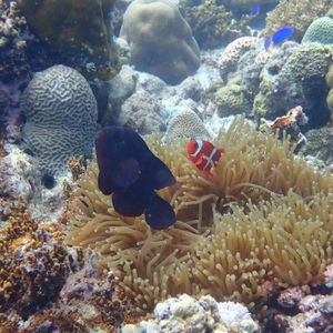 サンゴもお魚もたくさんいてお得なツアーだったと思います。残念だったのはほとんど自分たちでは自由に泳げず、スタッフの方に背中をつかまれたままの猫の状態笑 。今度は違う島にも行ってみたいです。船から降りるとき、膝くらいの浅瀬の水の中を歩く事もあるので浮いてしまうビーチサンダルより水泳用のシューズがあるといいかも。